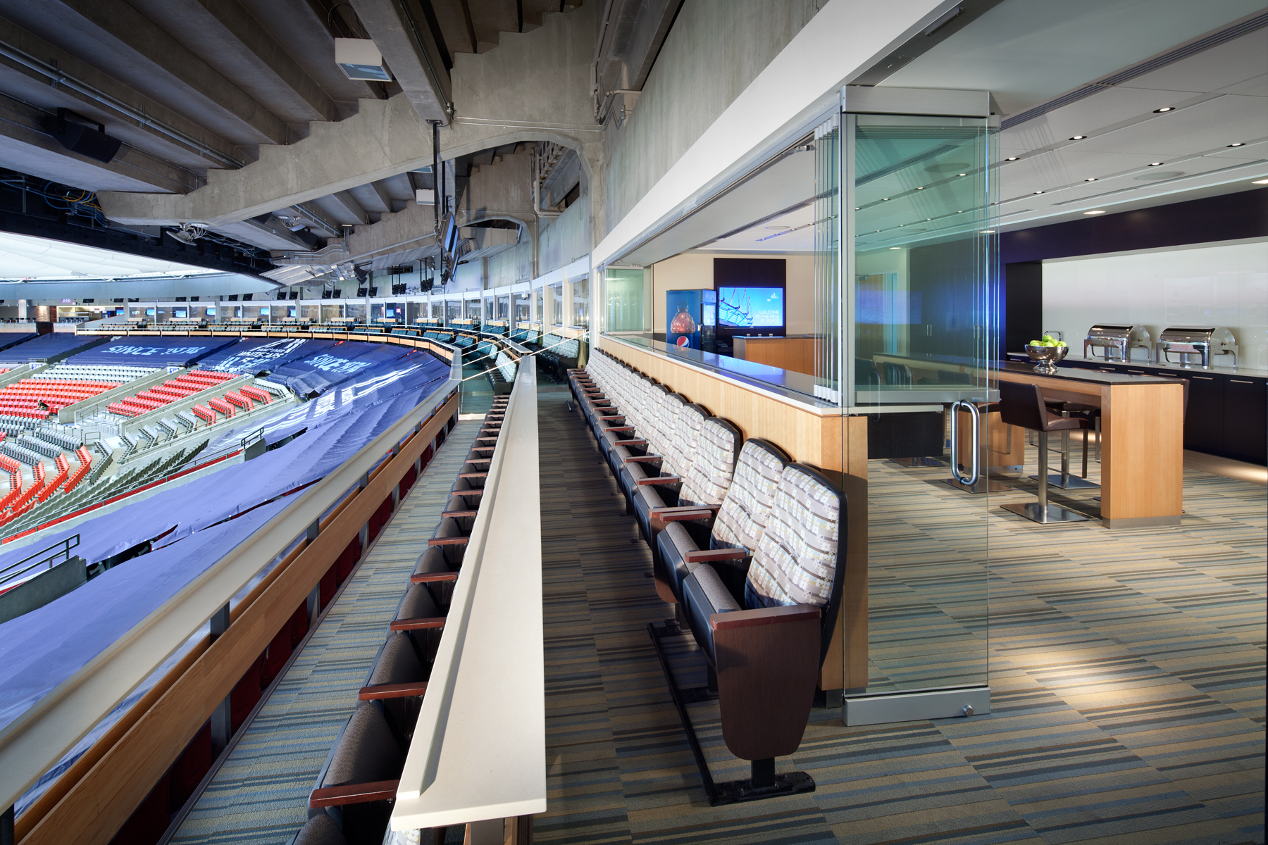 Brand New for 2026! Our Edgewater Suites have 75-person capacity and can be connected and combined to host up to 300 guests. In addition, you and your guests will receive access to the Edgewater Lounge, which includes a private bar and washrooms. Seating for each guest is in the lower bowl directly in front of the suite, steps away with easy access to go to and from your suite and the lounge.